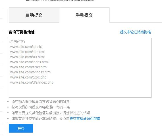 手动提交:一次性提交链接给百度,可以使用此种方式。